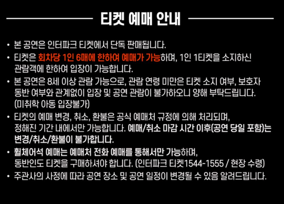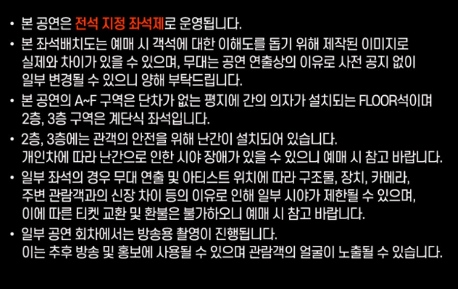 - 공연 시작 1시간 전부터 입장 가능 (공연 30분 전까지 도착 권장)