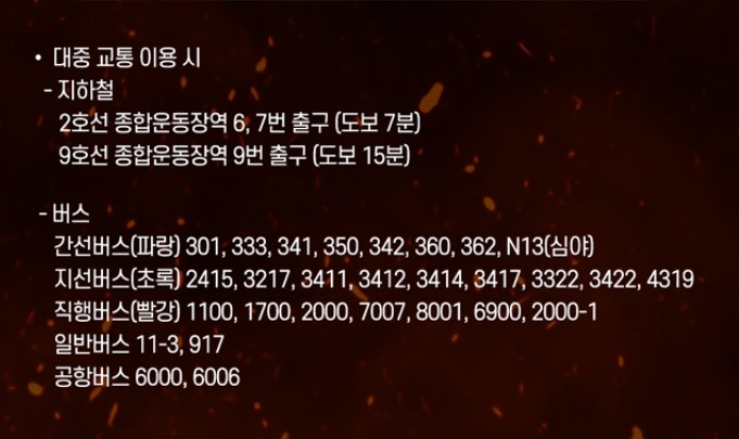 - 공연장 위치: 서울 송파구 올림픽로 25, 잠실실내체육관